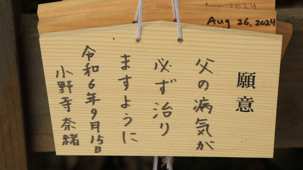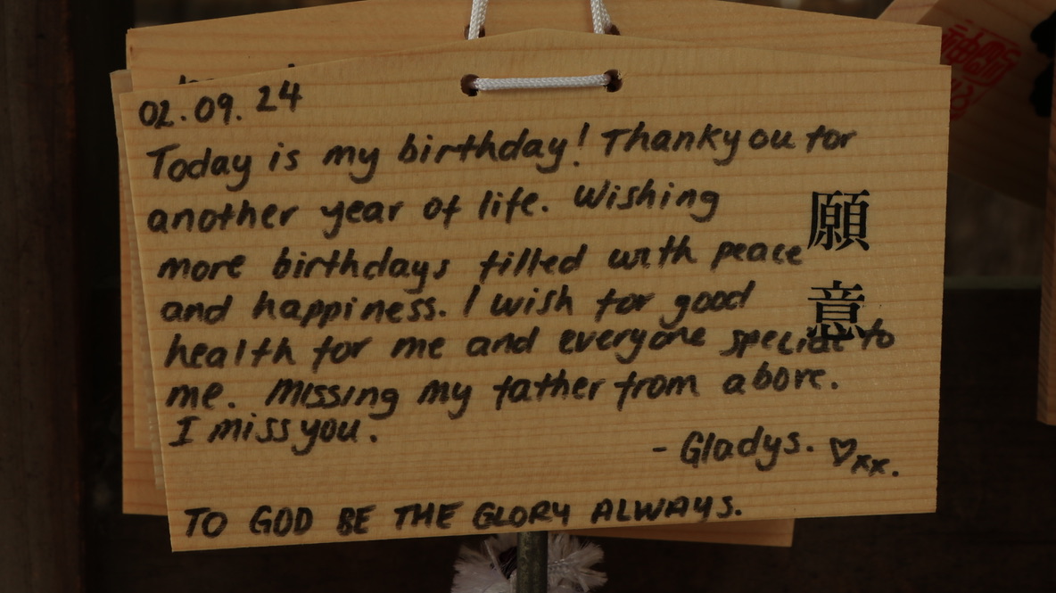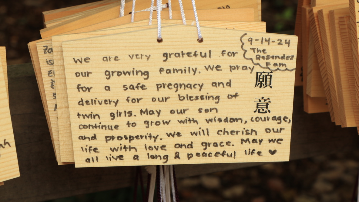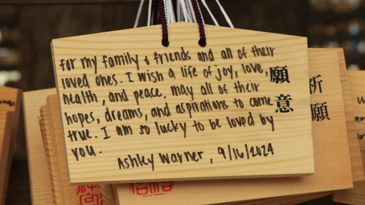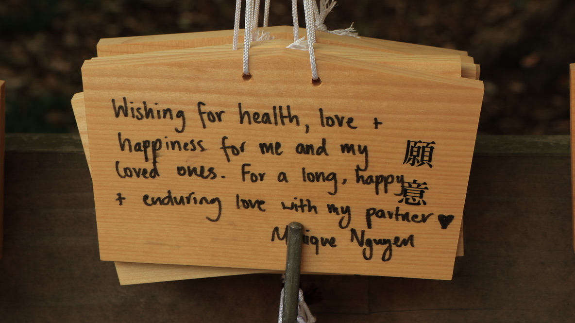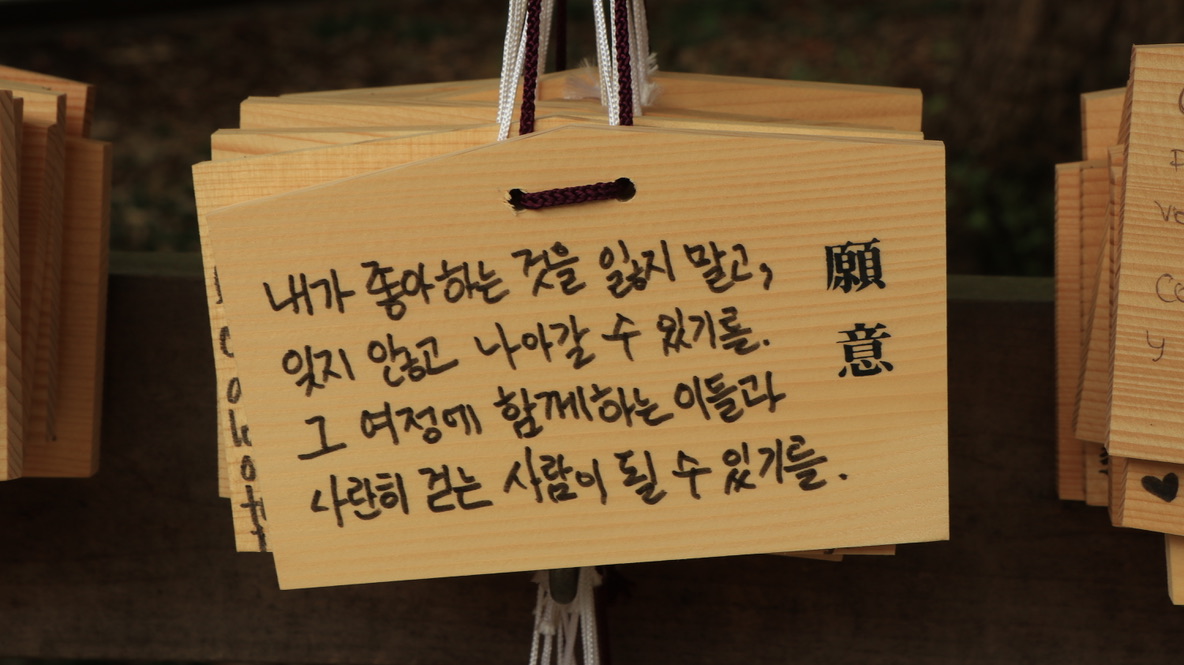 神树下挂满了绘马,我在树下驻足良久,几乎看了所有的牌子。我发现,无论何种语言、肤色、年龄阶段的人们其实只有一个共同的朴素的心愿——“希望自己和家人身体健康,平安喜乐”。