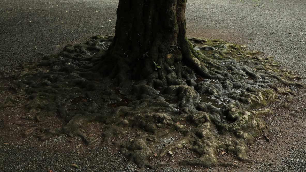 或许因为园林里都是碎石子铺成的路,所以才让树根长成了这样子,隐忍又蓬勃,很像日本这个民族对吗?
