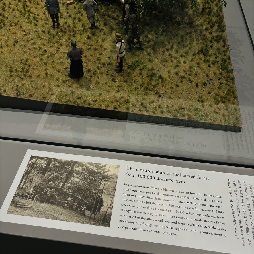 为了将一片荒野改造成供奉神灵的圣林,明治神宫的建设规划制定完成,旨在让圣林在自然力量的驱动下茁壮成长,无需人为干预。为了实现这项着眼于百年后的宏伟计划,人们捐赠了超过十万棵树木,并有来自全国各地的十一万名志愿者参与建设。源源不断的树木通过铁路、海运和货车运送到工地,在东京市中心,一片仿佛原始森林般拔地而起。