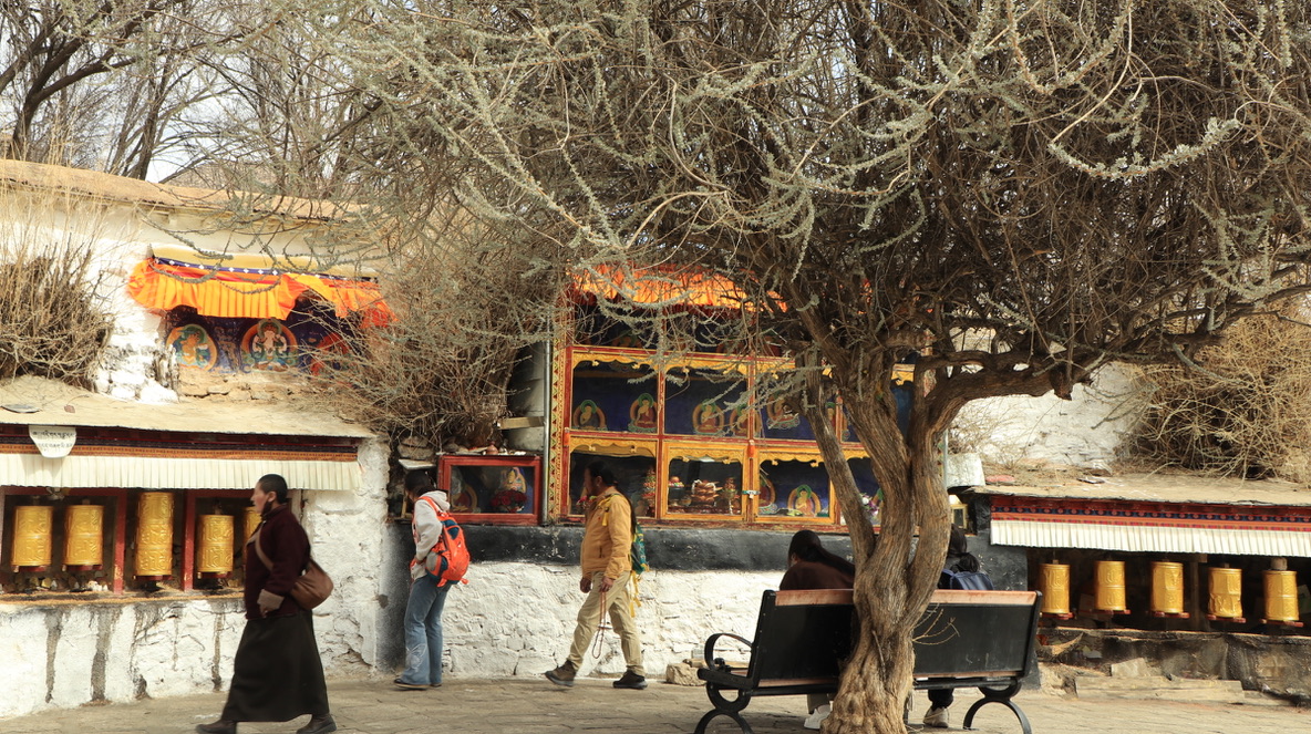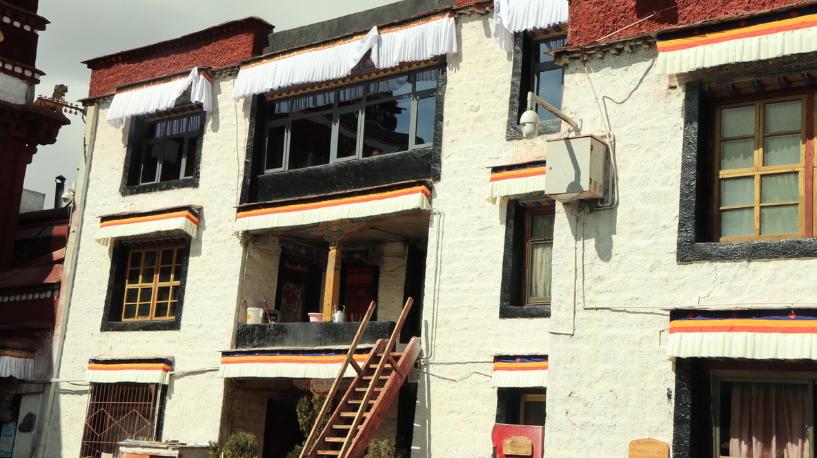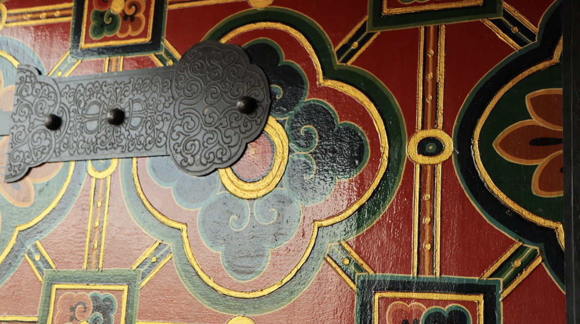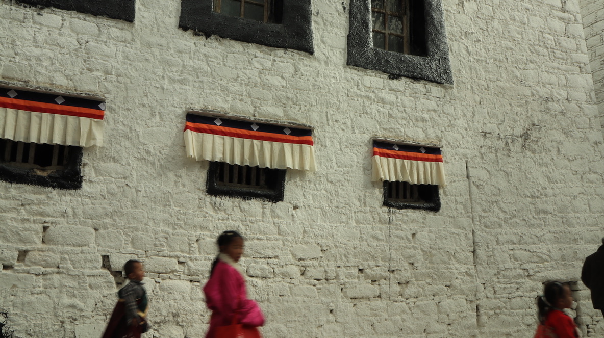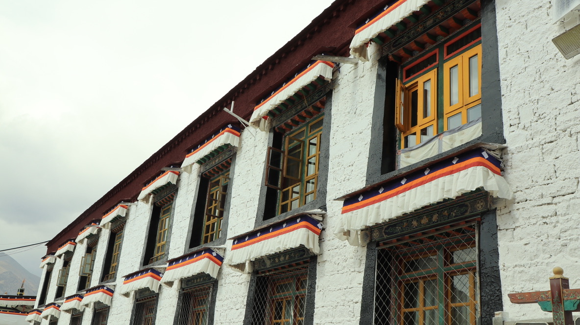 在大昭寺Jokhang temple踏上明代的地板抚摸唐代的门窗;