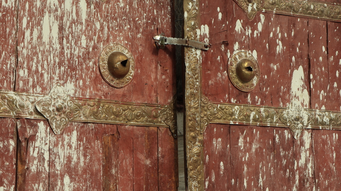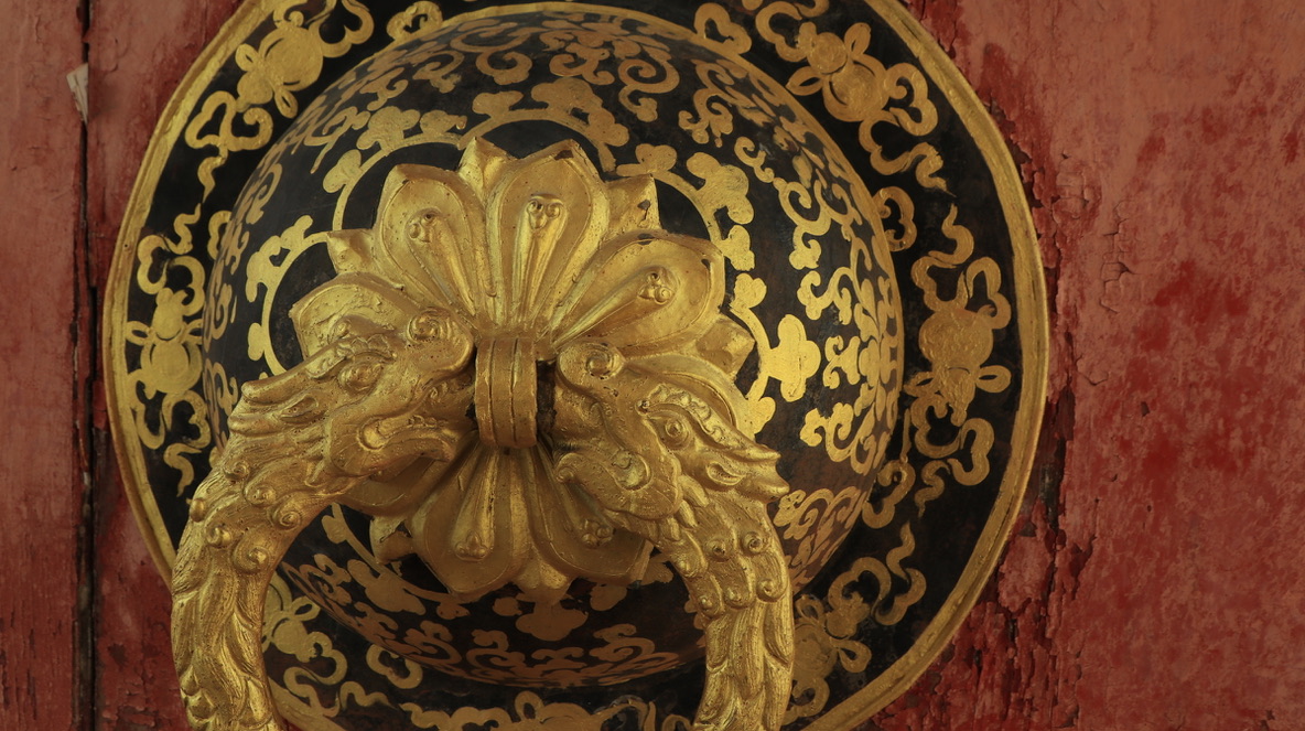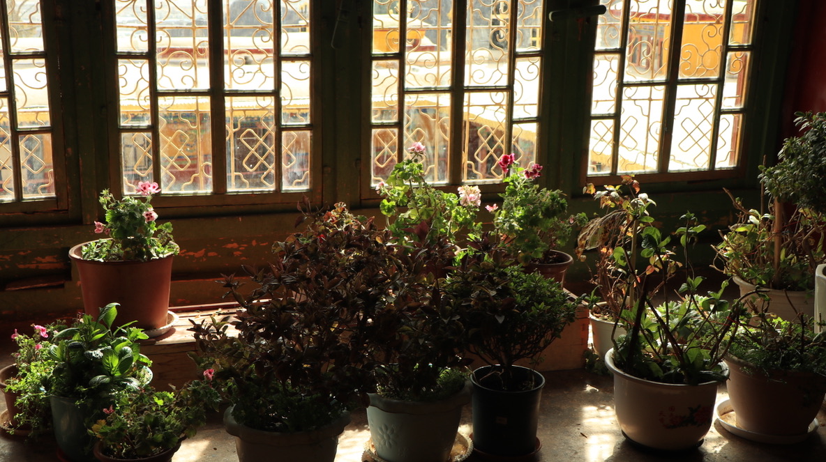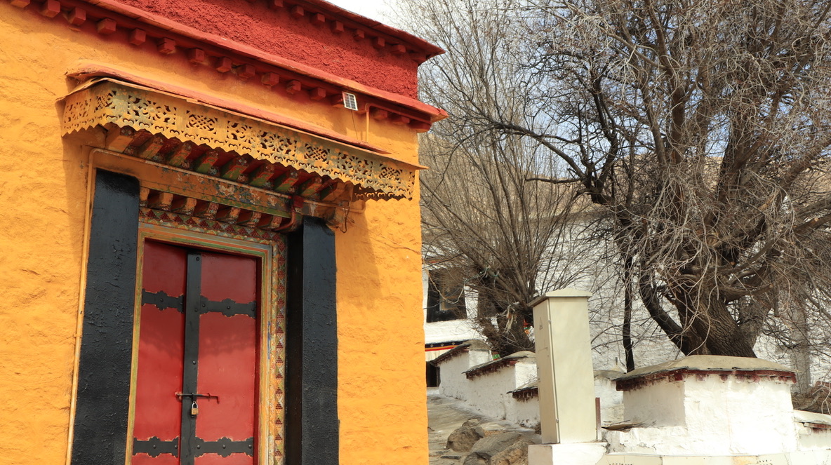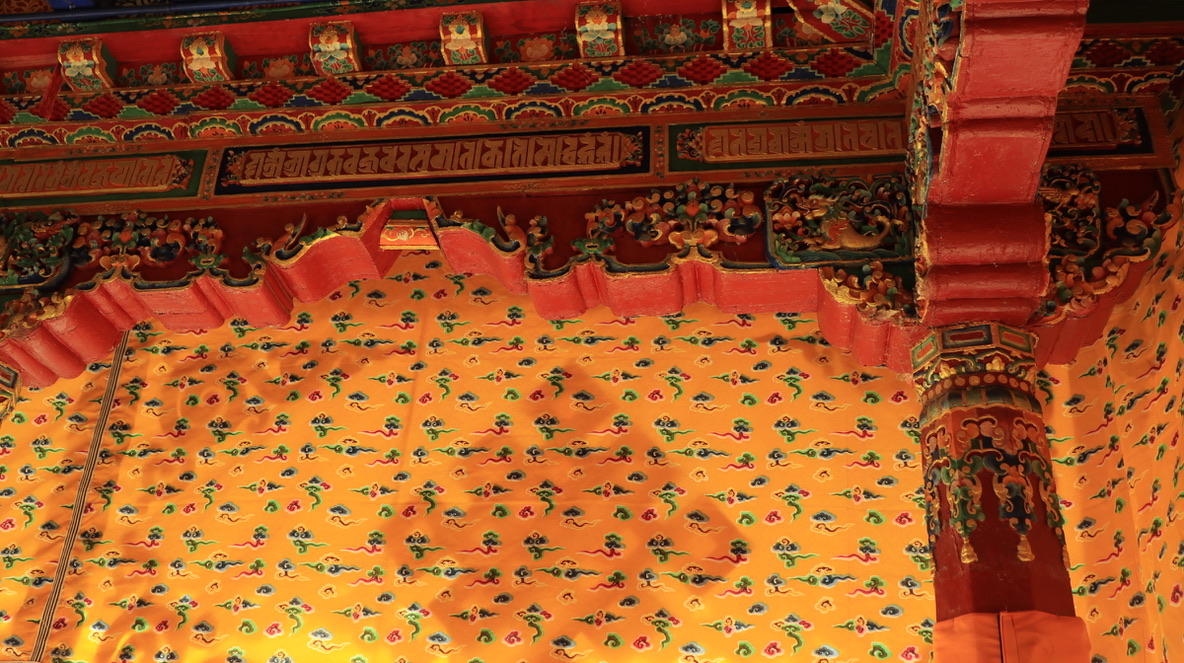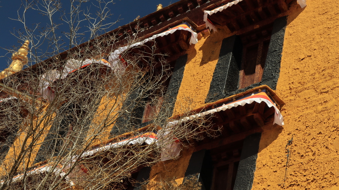 在大昭寺Jokhang temple踏上明代的地板抚摸唐代的门窗;