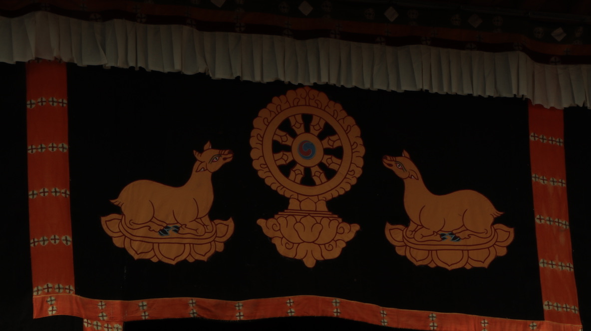 小鹿与法轮放在一起,代表宗教;
