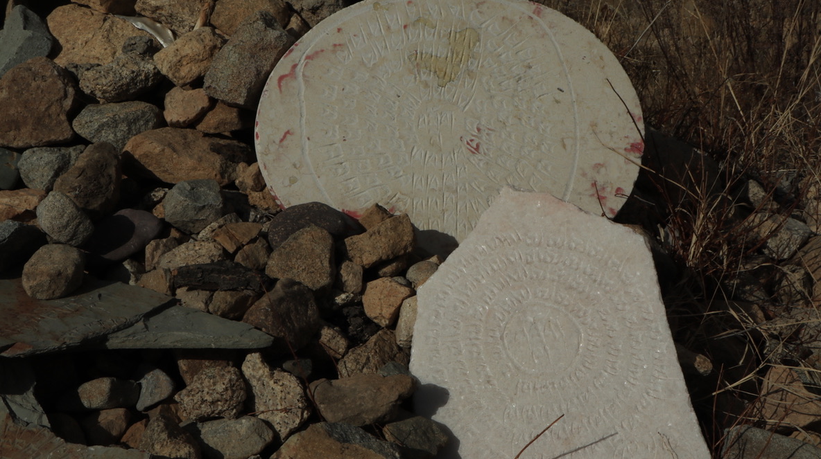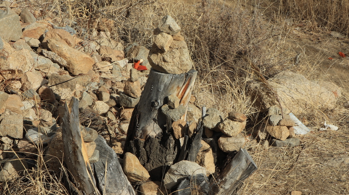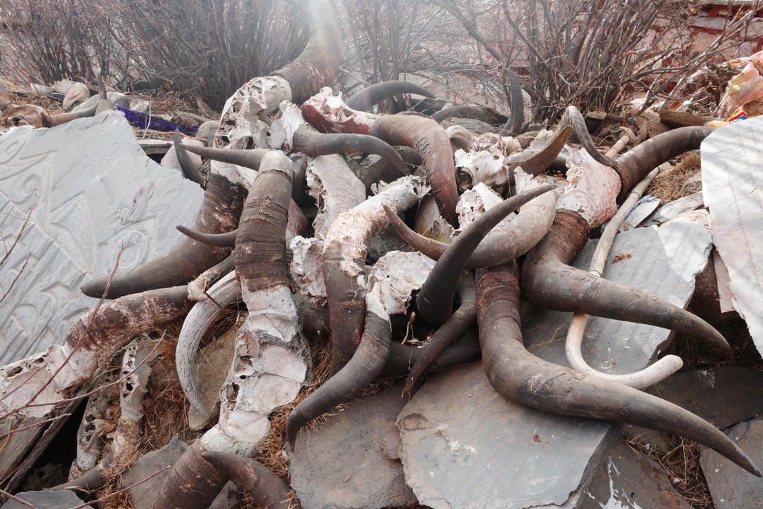 天葬台周围的物品,五彩谷,刻满经文的玛尼堆,牛角…是生者对逝者的眷恋与祝福…就好比农耕文明的汉人,传承清明节祭祖的风俗,爱不直接被言说,但这些就是爱。