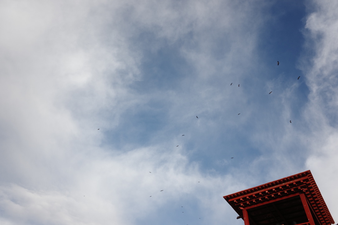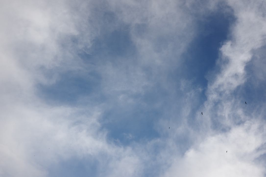 天空中正在盘旋聚集的秃鹫