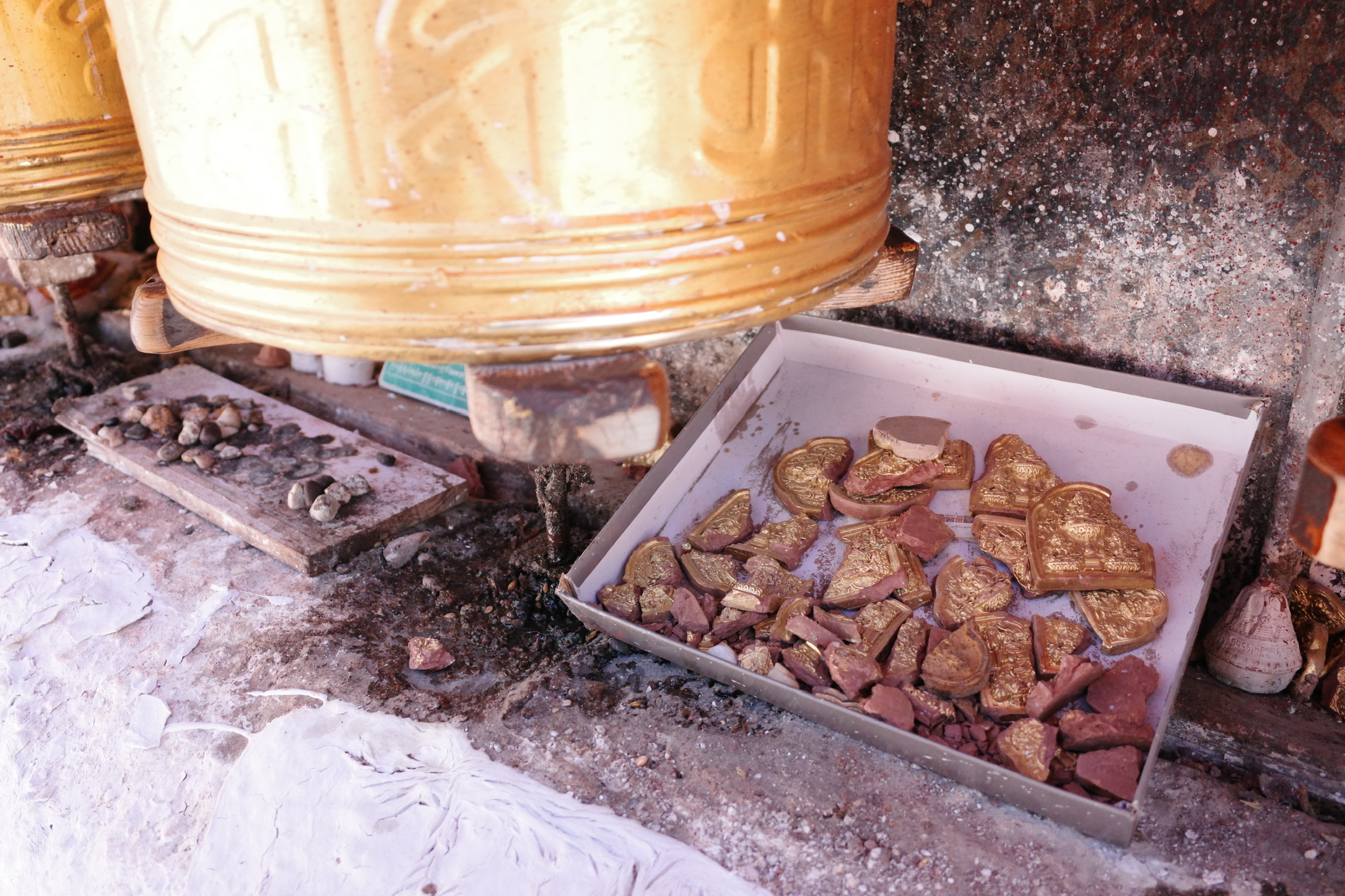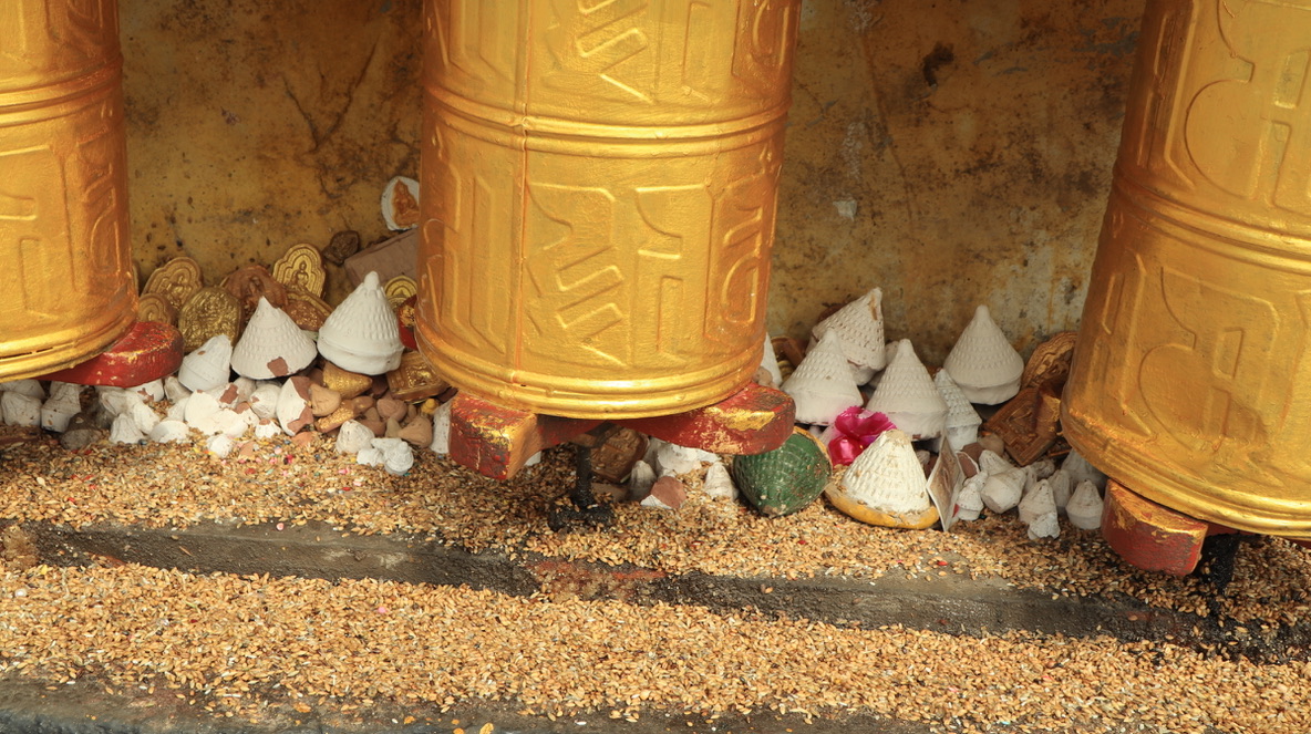 门口里塞满了信众留下的供养,有5毛,有1毛,看到这里我的心酸酸的