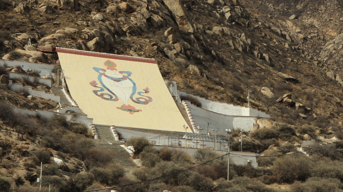 哲蚌寺展佛台,雪顿节——藏区夏季最大节日时,会在此处展出唐卡,正式开启雪顿节,家家户户当天一定会吃酸奶