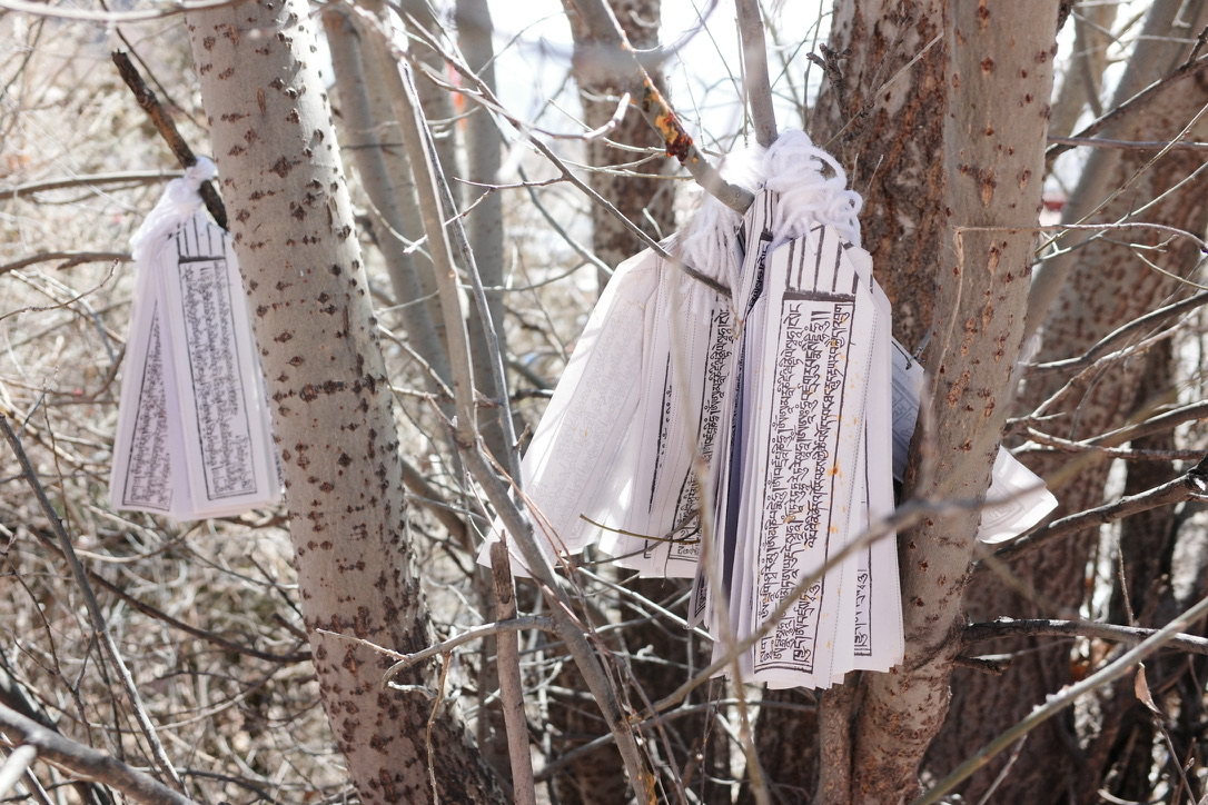 - 代位祈祷: 藏民将自家牛羊的毛剪下一小撮挂在寺庙圣地,象征着这只动物也来到了神灵面前,以此为牲畜祈求长寿、平安、不生病,或者希望它们死后能投胎到更好的去处。